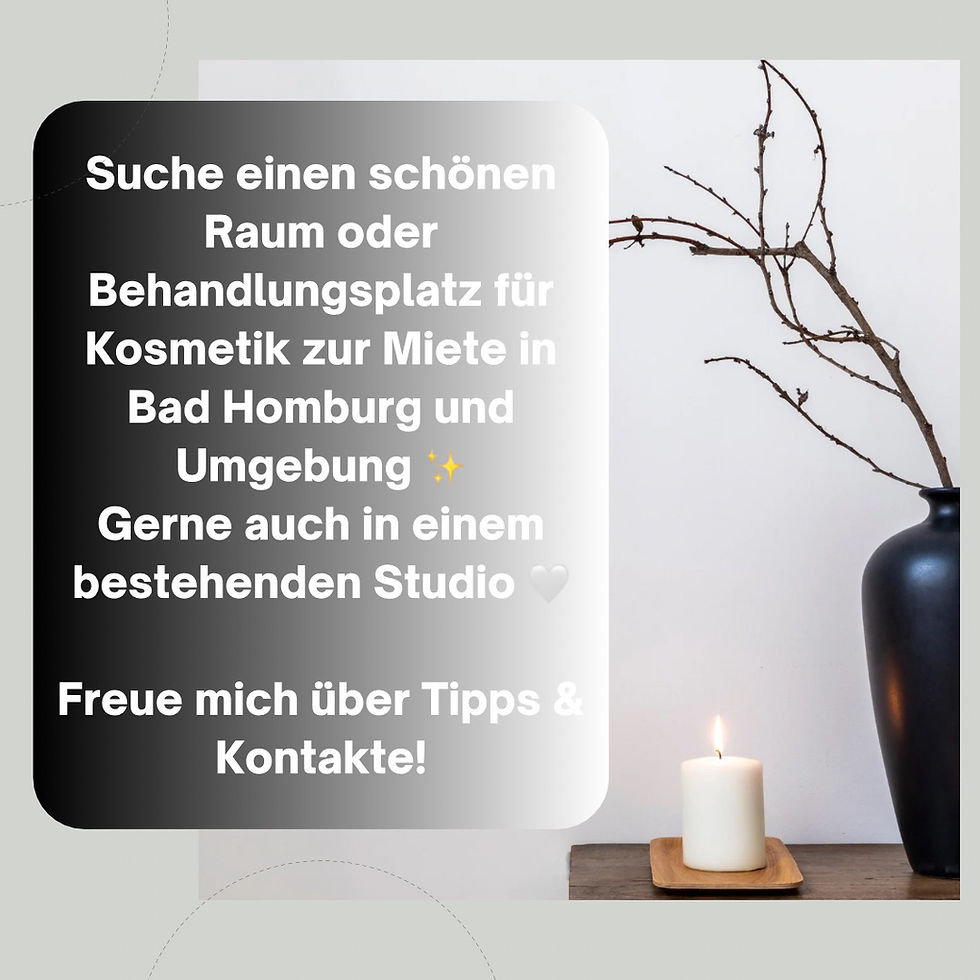 Aktuell suche ich ein Kosmetikstudio, einen Behandlungsraum oder einen Platz zur Miete.